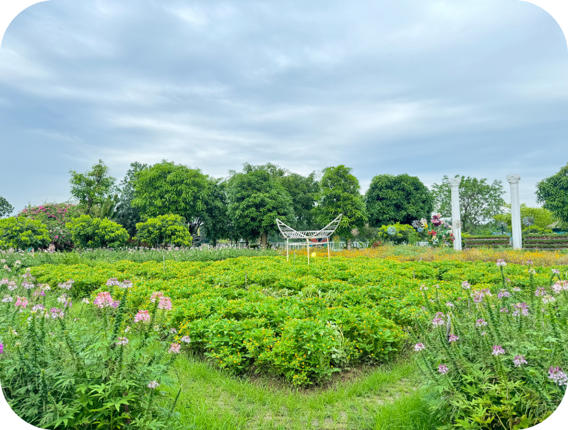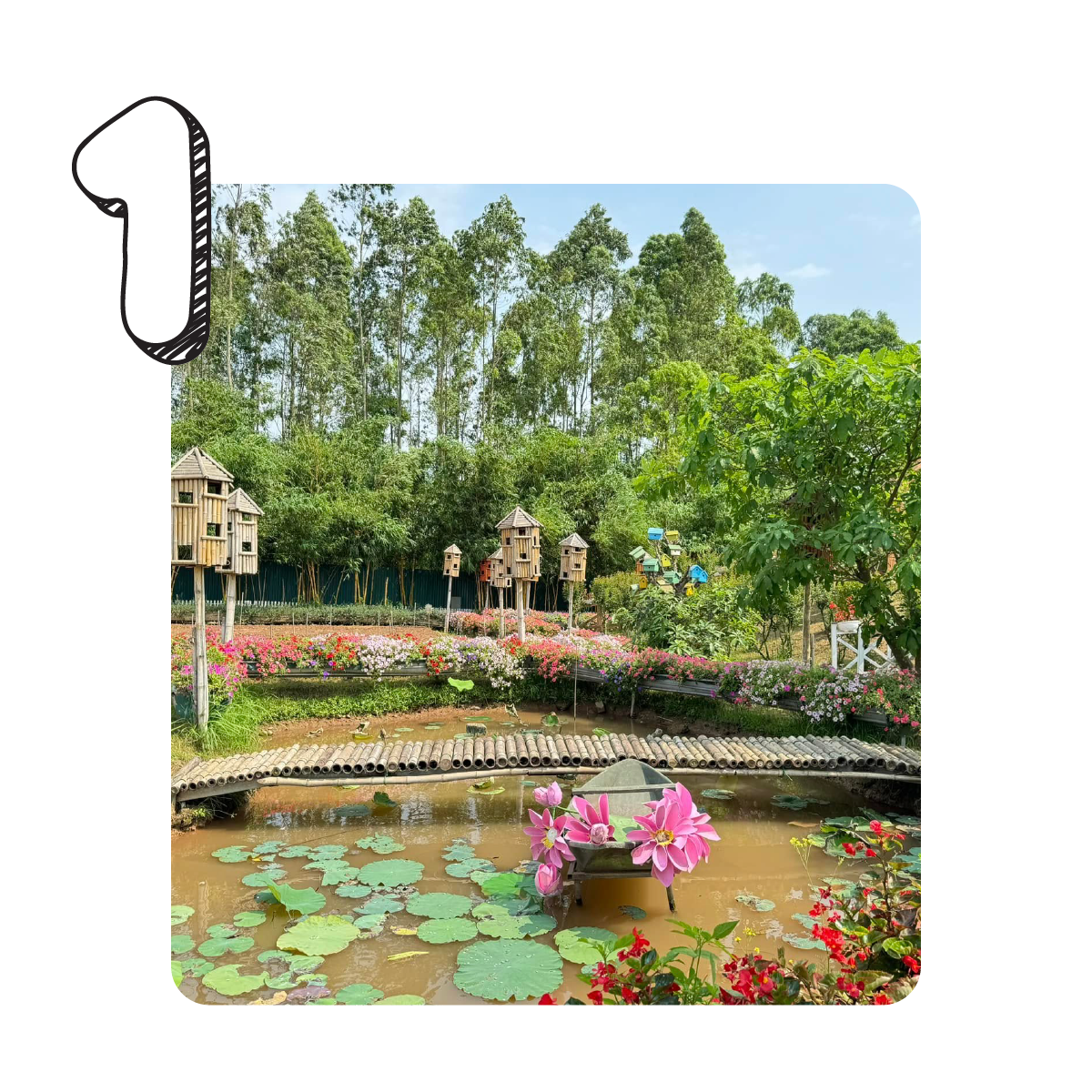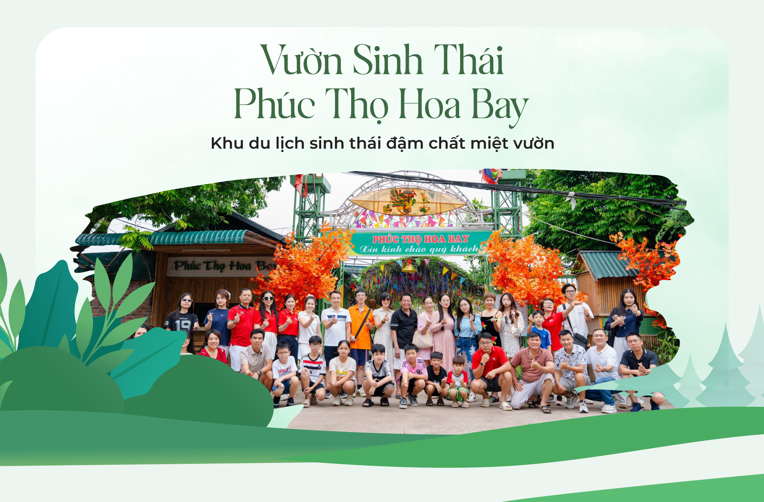 Phúc Thọ Hoa Bay sở hữu khu vườn hoa sinh thái với hoa tươi nở quanh năm, thay đổi theo mùa, tạo nên không gian rực rỡ và đầy sức sống.Các tiểu cảnh được thiết kế đa dạng, hài hòa với thiên nhiên, mang phong cách phim trường thu nhỏ. Đây là địa điểm lý tưởng để du khách tham quan, chụp ảnh kỷ niệm, check-in và lưu giữ những khoảnh khắc đẹp cùng gia đình, bạn bè.